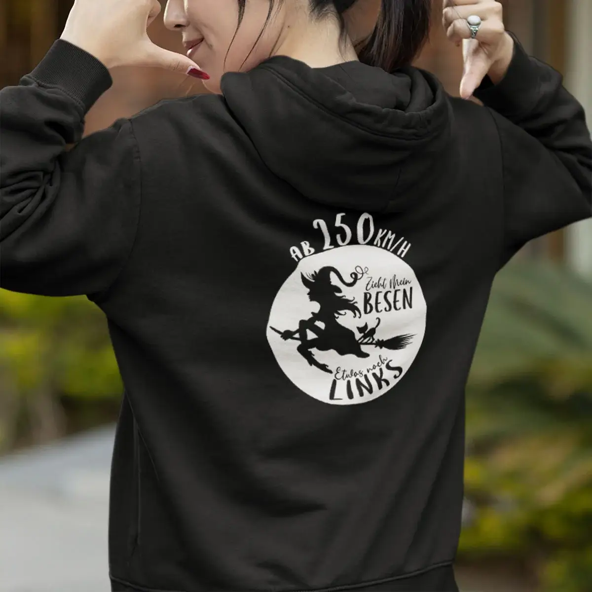 Ein Hoodie, der Stil, Magie und Funktionalität vereint – greif zu und sei bereit für deinen nächsten Hexenritt!