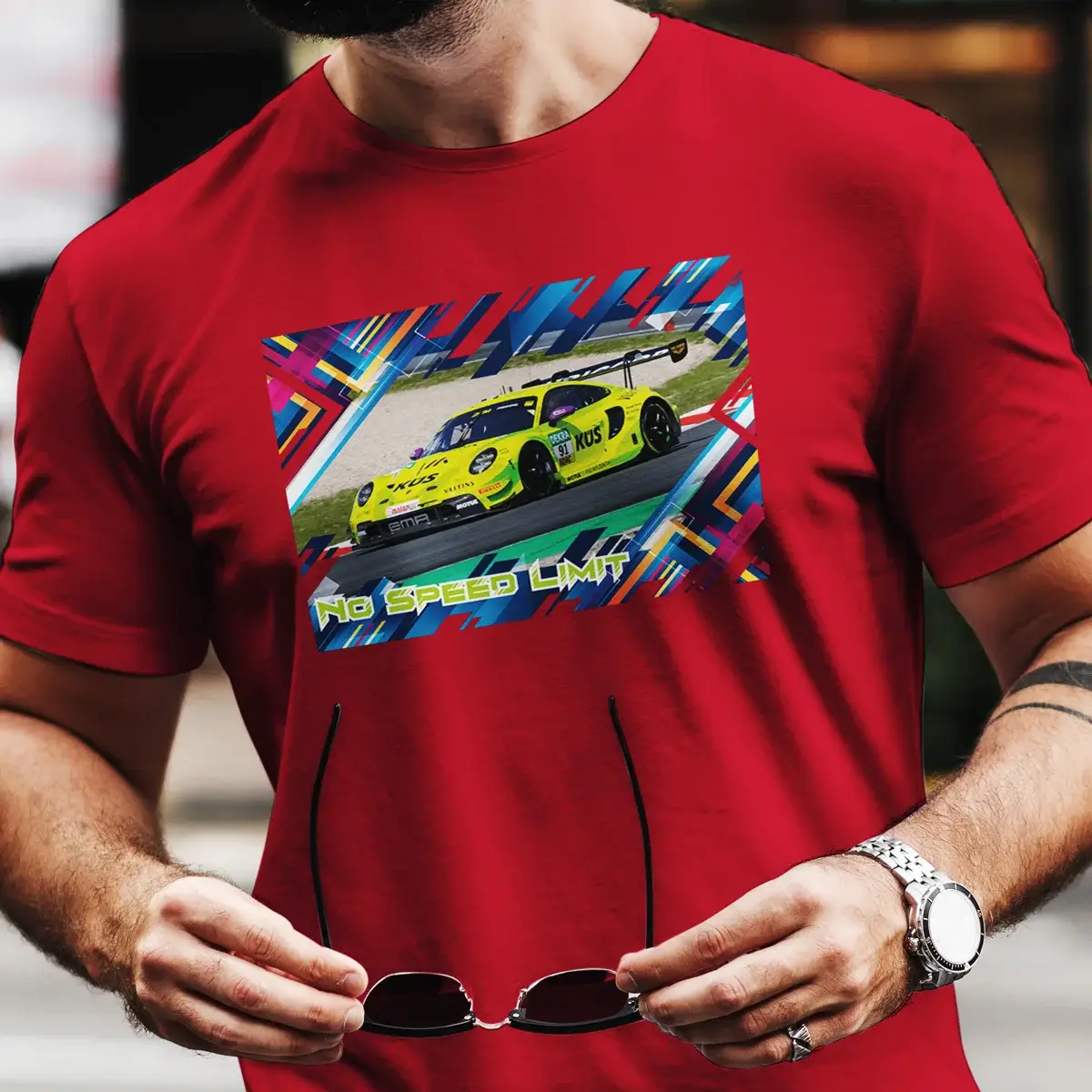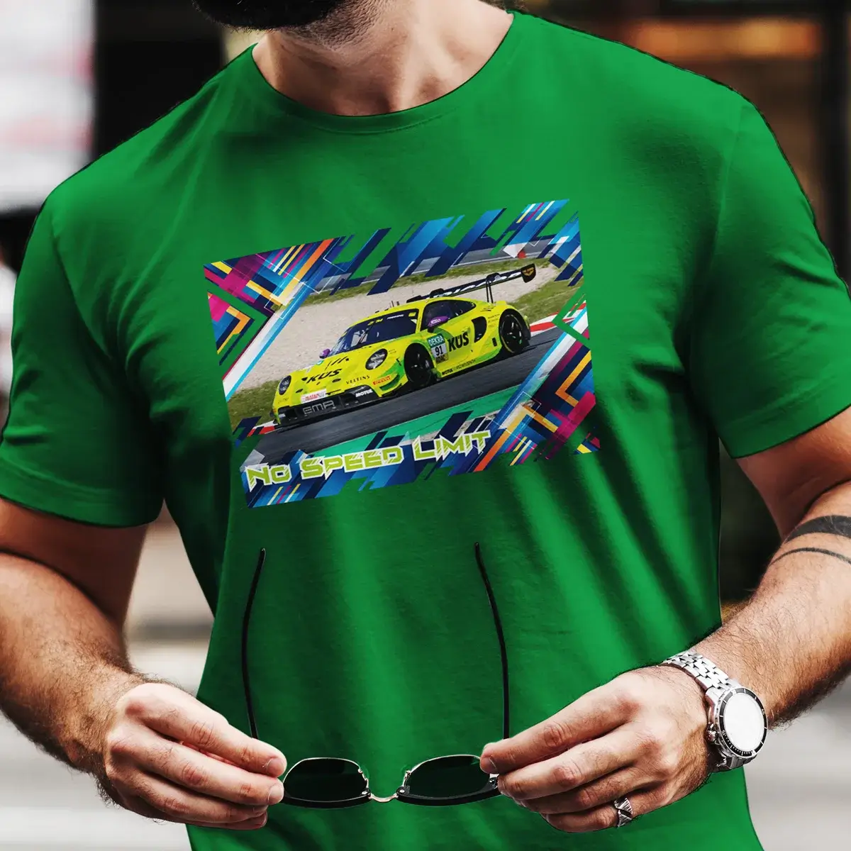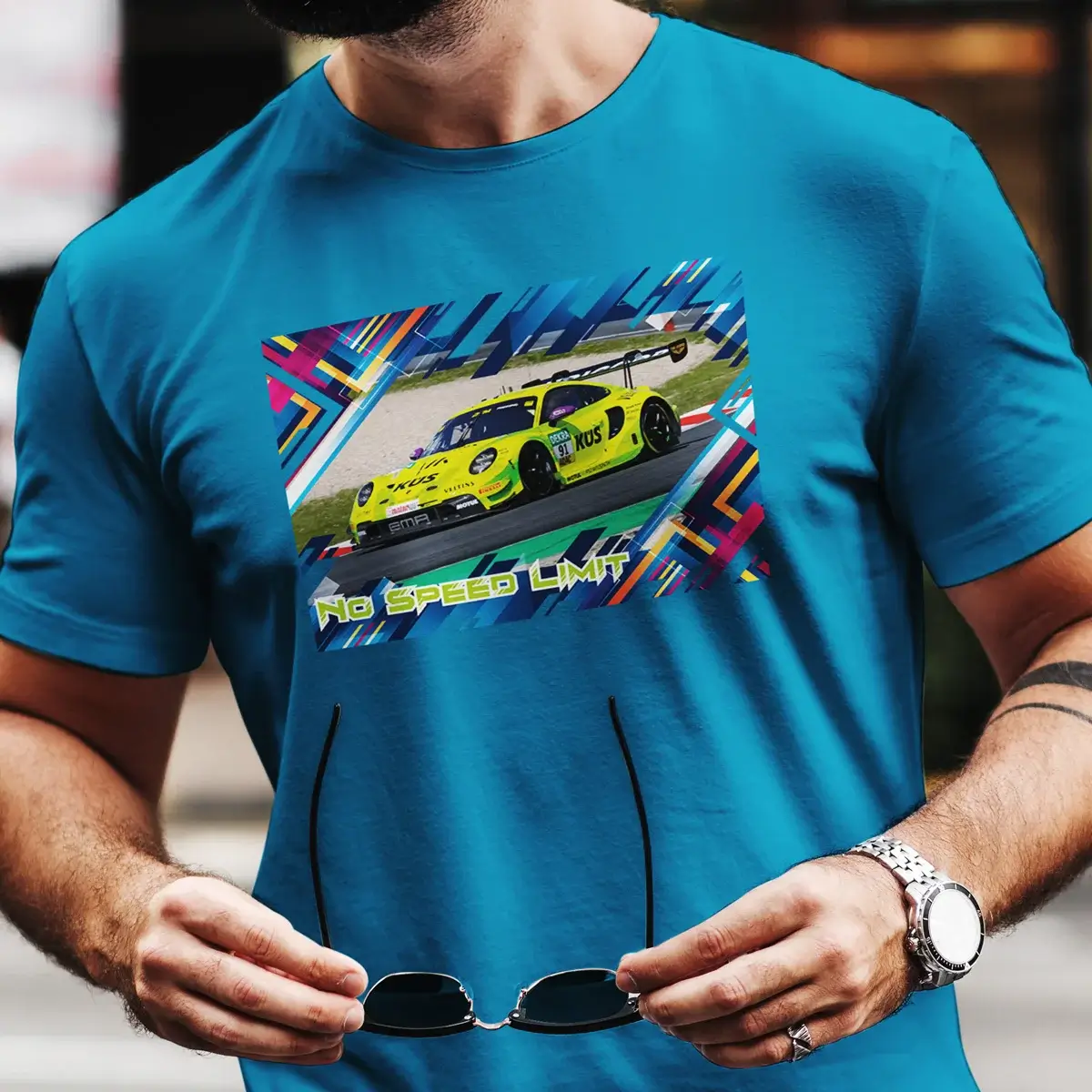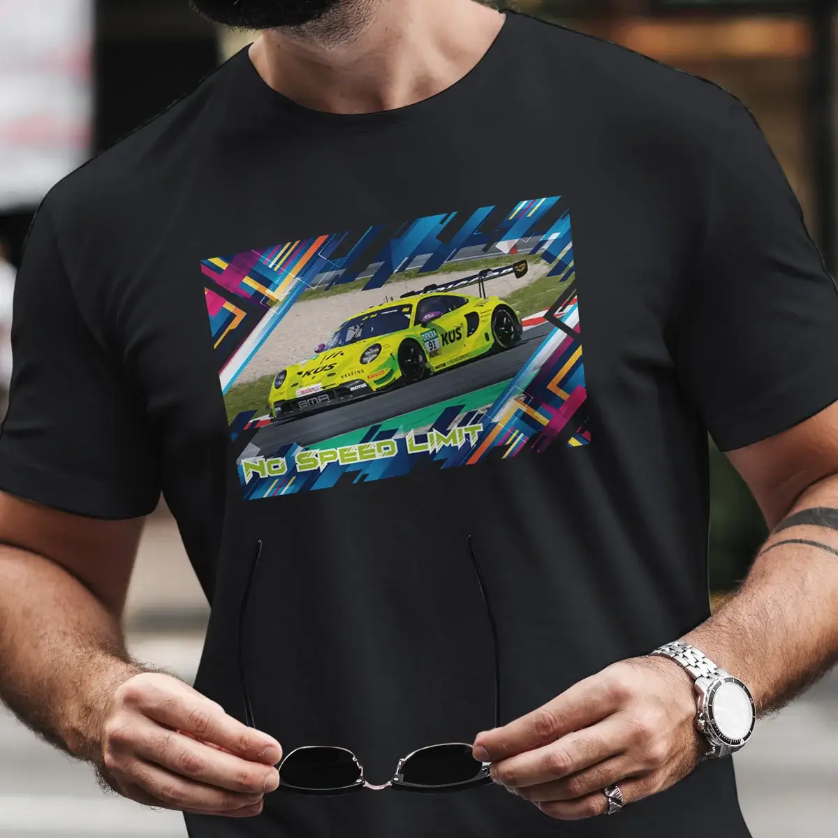 Pole Position fĂŒrs Kleiderschrank-Rennen erreicht: Das Mindset TâShirt bringt den kultigen Porsche 911 GT3 R mit der Startnummer #91 als hochwertigen Frontprint direkt auf deine Brust â und macht jeden Alltag zur Ideallinie.